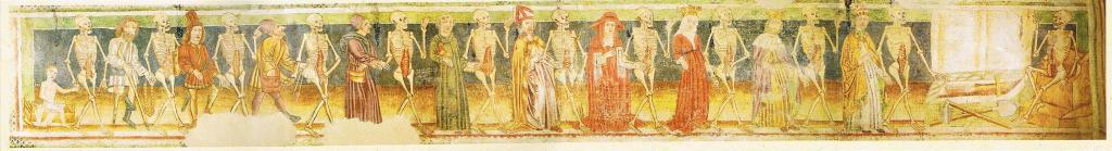 Dance macabre fresco, Holy trinity church Slovenien från 1490