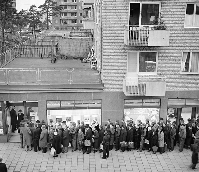 Kö utanför Systembolaget 23 december 1957, Svenska Dagbladet Åke Blomquist